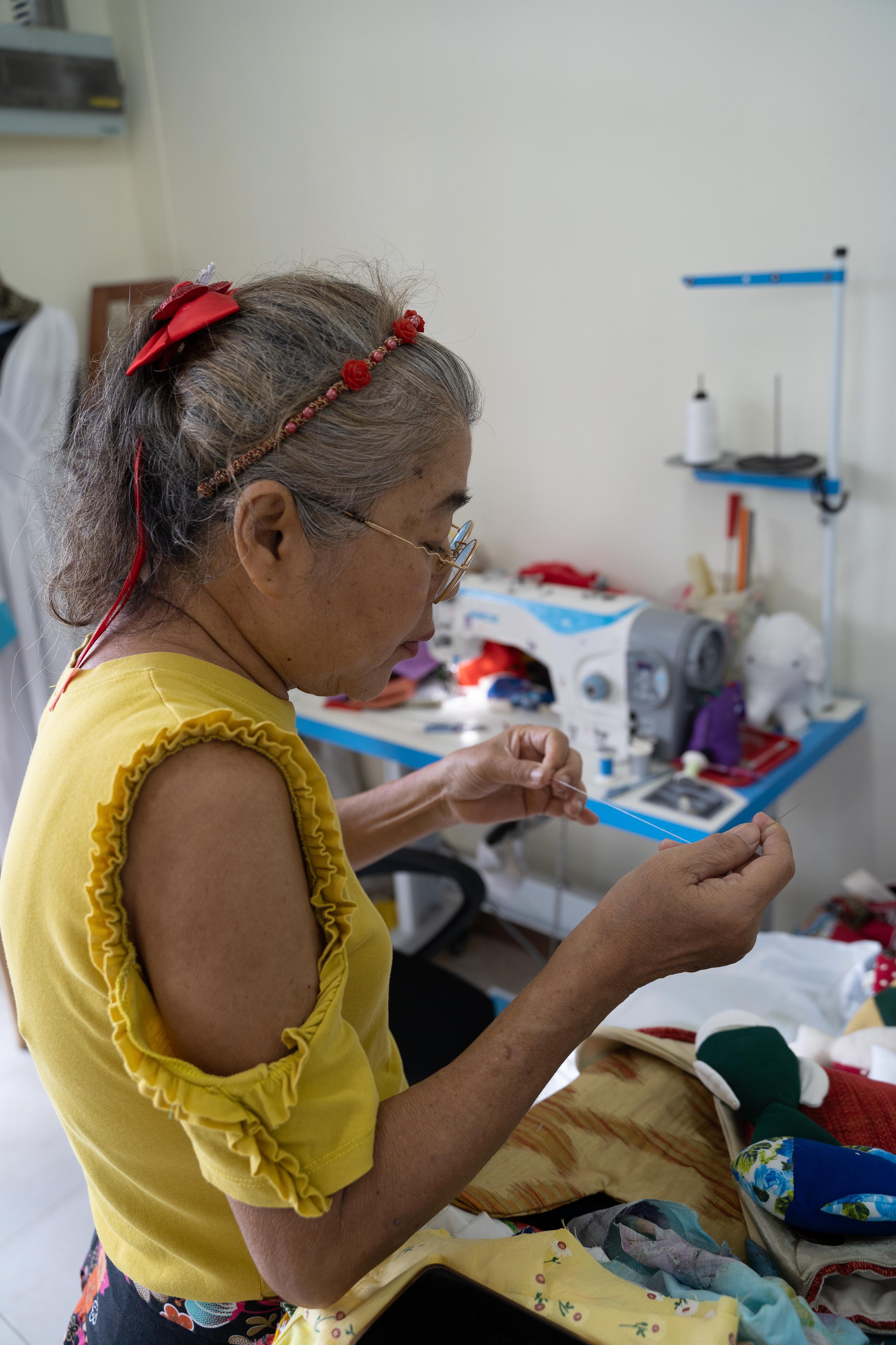 In September 2024 we relocated to a new spot in Phuket Town, which includes a shop, sewing room, and craft room. Our artisans each have their own equipment and space.